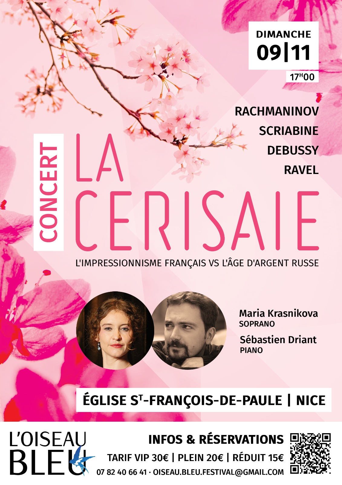 La Cerisaie est un concert lyrique qui se déroule le dimanche 9 novembre 2025 à 17h, à l'église Saint François de Paule, à Nice.